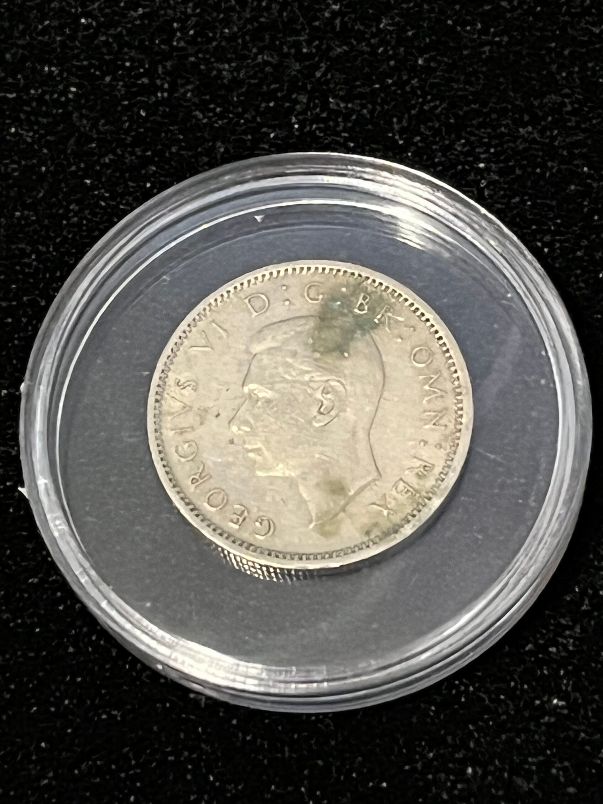 The 1948 British Sixpence featuring King George VI is a pre-decimal coin made of cupro-nickel. It has a diameter of 19 mm and weighs 2.81 grams. The obverse shows the head of King George VI with the legend "GEORGIVS VI D:G:BR:OMN:REX" (George VI by the Grace of God King of Great Britain, Defender of the Faith), while the reverse features a lion atop a crown with the legend "FID DEF IND IMP" (Defender of the Faith) and "SIXPENCE".