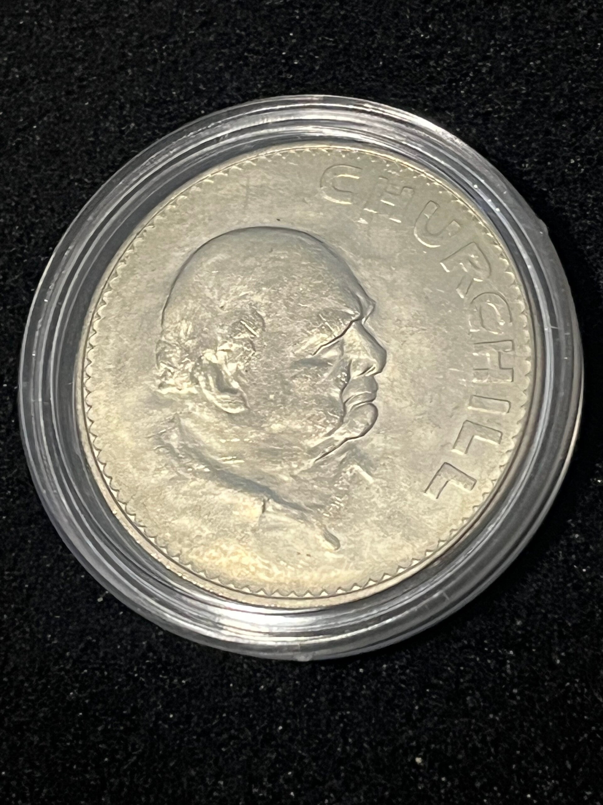 The 1965 Winston Churchill Crown is a commemorative coin issued by the United Kingdom to honor Sir Winston Churchill following his death in 1965. Here are some key details about the coin: