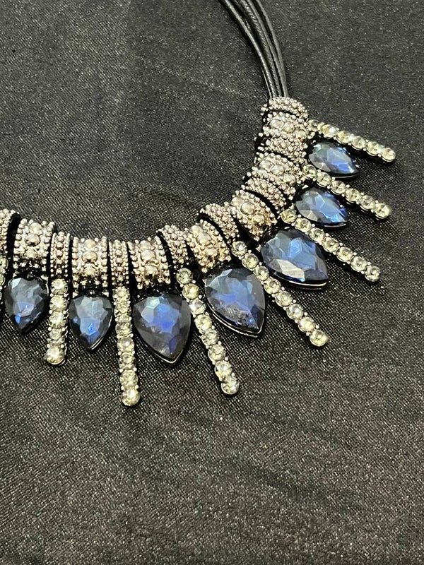 Ladies beautiful blue stone with silver diamon tassles on black rope